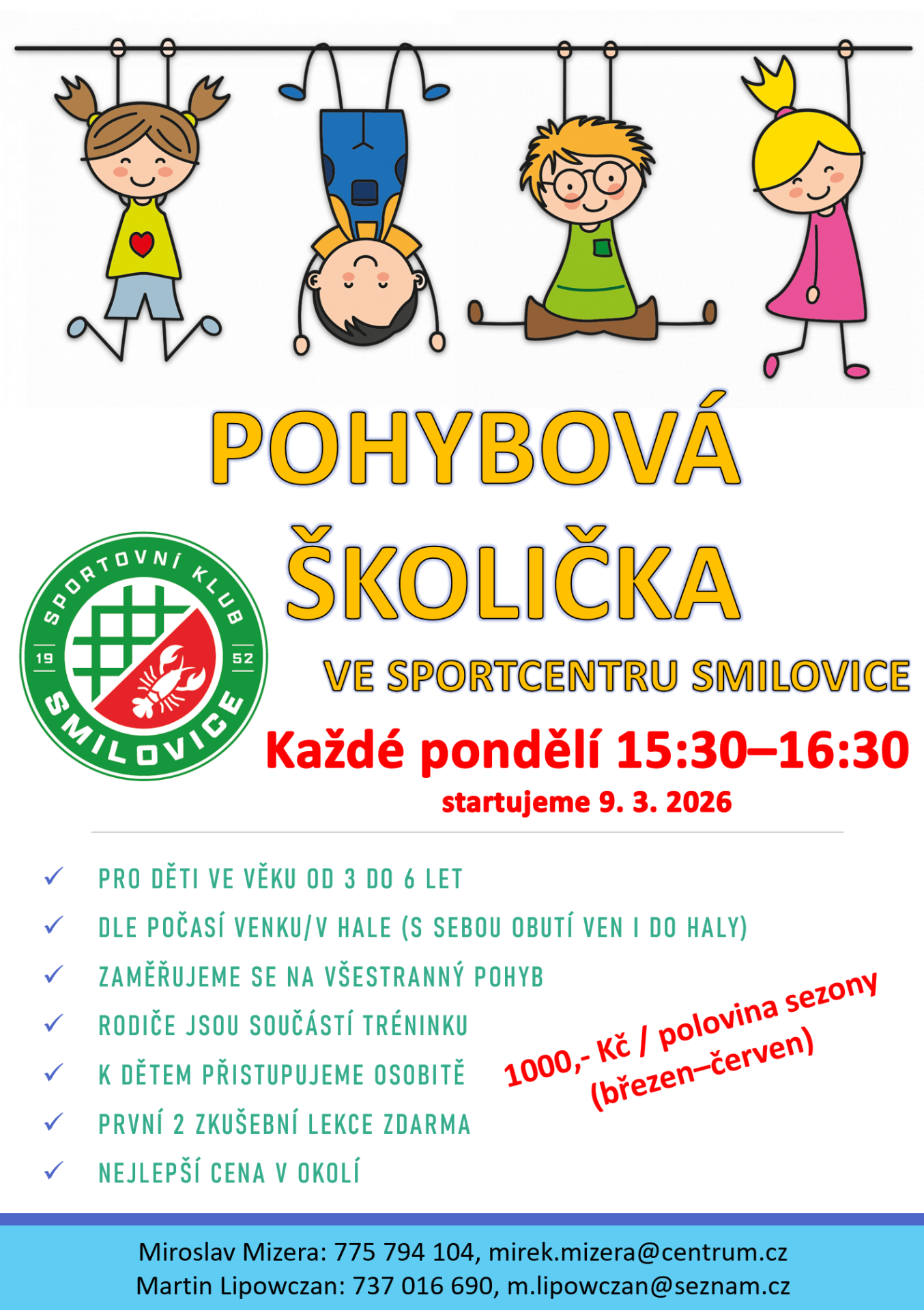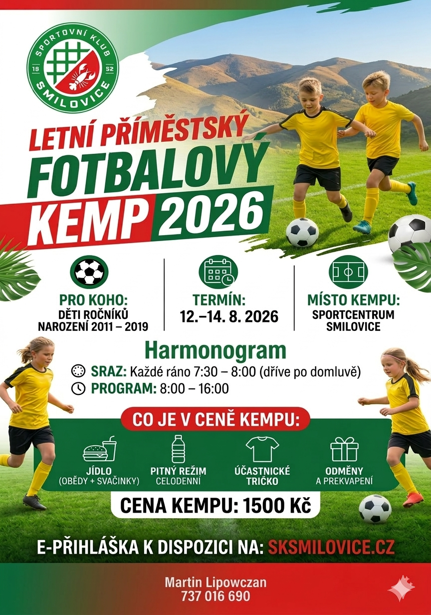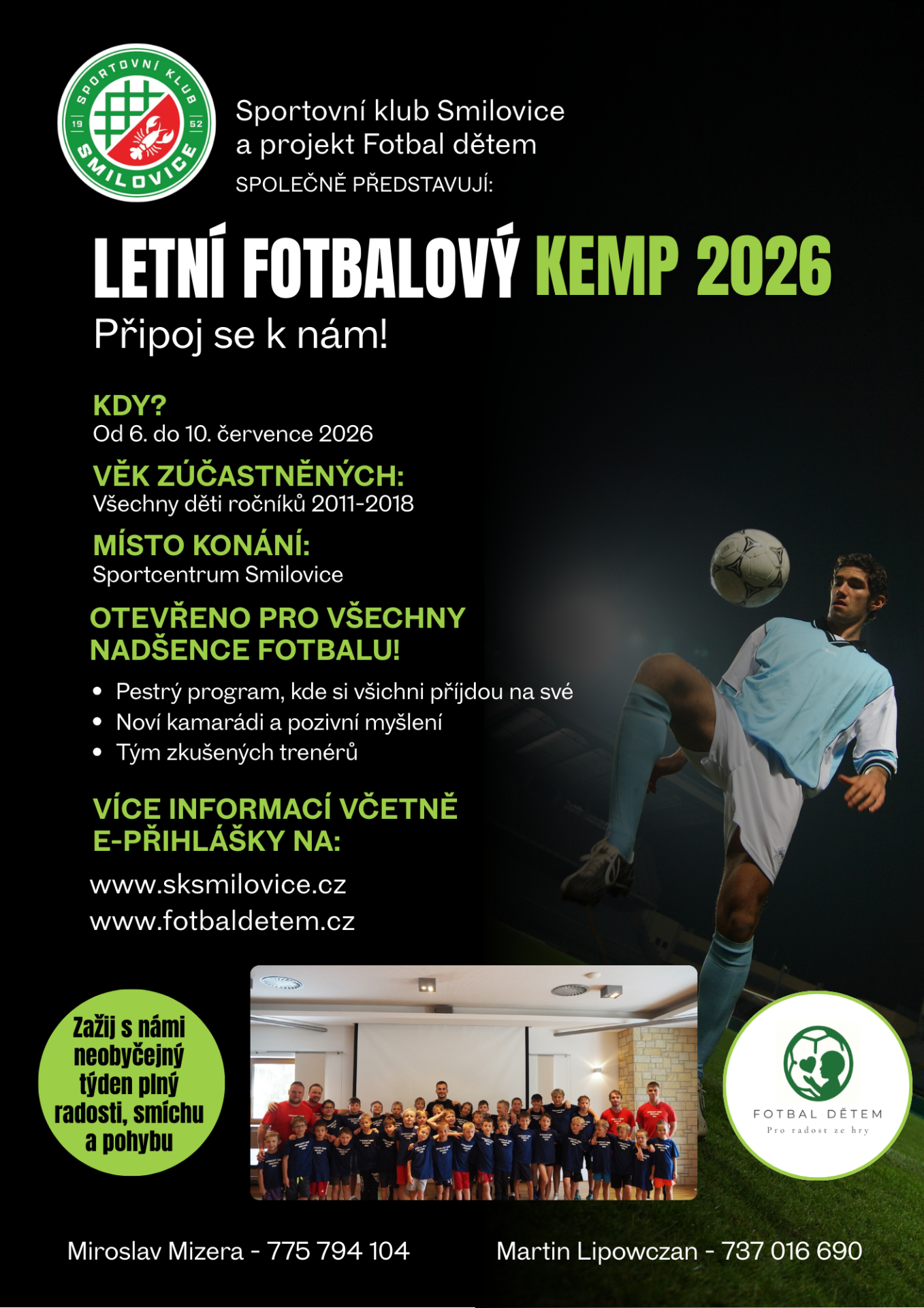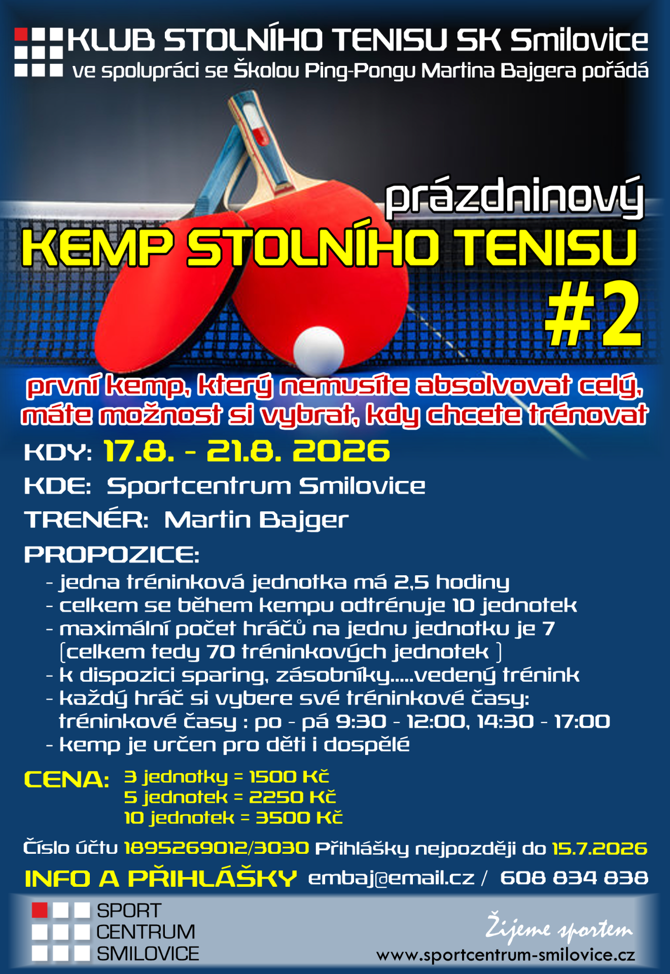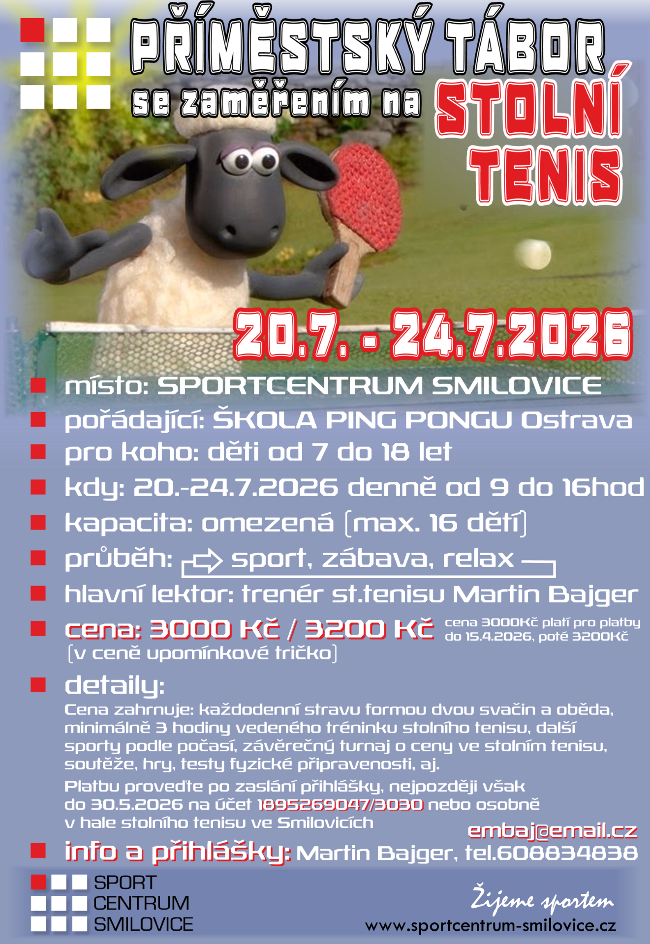 - Letní kempy ve Sportcentru Smilovice včetně online přihlášek viz ZDE.
